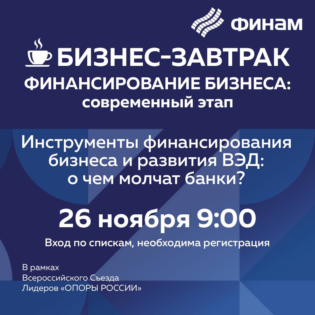 «Инструменты финансирования бизнеса и развития ВЭД: о чем молчат банки?» - деловой завтрак в рамках Съезда Лидеров Бизнеса.